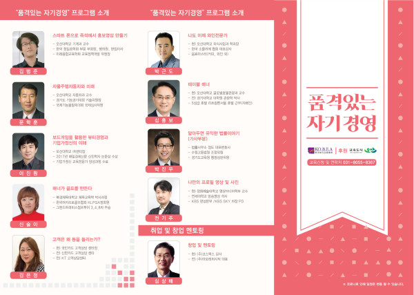 o 교육내용 : 창업재무설계, 뷰티 CS & 이미지메이킹, 알아두면 유익한 법률이야기, 생활 속의 세금줄이기,